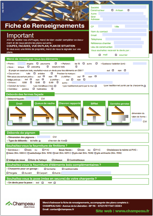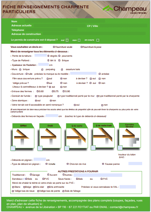 Docuthèque Docuthèque Filtres Filtrer Documentation technique Fiche produit Présentation générale Thématique Fiche Ossature Bois_Renseignements Professionnels et Particuliers pdf 294 Ko Fiche Charpente_Renseignements Professionnels pdf 594 Ko Fiche Charpente_Renseignements Particuliers pdf 409 Ko Plaquette Solutions poutres connectées_POSI pdf 485 Ko Secteurs d'intervention-Conducteurs de Travaux pdf 293 Ko Fiche système poutres Posi_Renseignements Professionnels et Particuliers pdf 323 Ko Secteurs de pose_2026 pdf 245 Ko Fiche Accès Chantier_Renseignements pdf 1 Mo Plaquette Champeau 2020 pdf 4 Mo 1 2